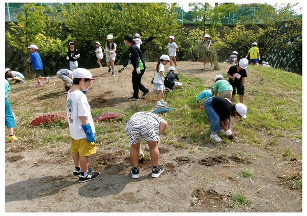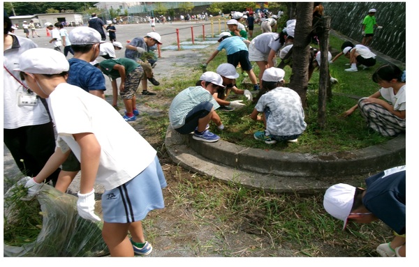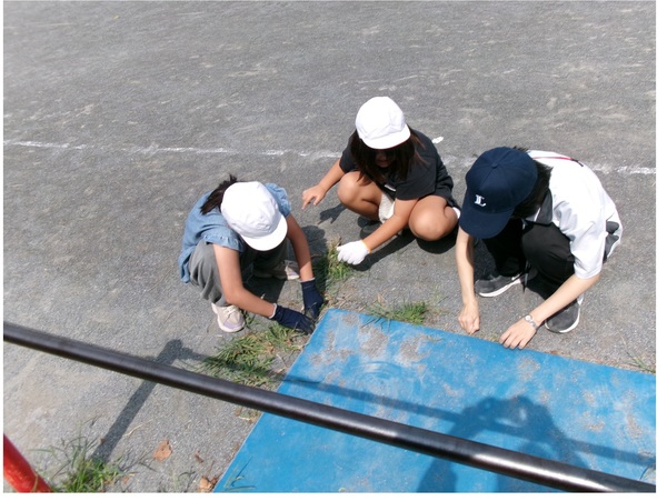 運動会にむけて、校庭の草を取ったり、小石を拾ったりしました。みんなのおかげで校庭がきれいになりました。