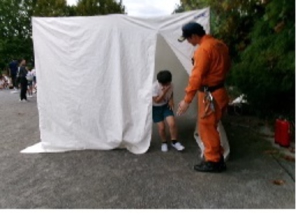 火災が発生した想定で避難訓練を行いました。みんなの避難する姿を見ていた消防署の方から、よくできていたとお話をいただきました。また、避難の合言葉や火事の時には窓を閉め、地震の時には窓を開けるなど教えていただきました。避難訓練の後、4年生は消火訓練を見学し、煙体験を行いました。