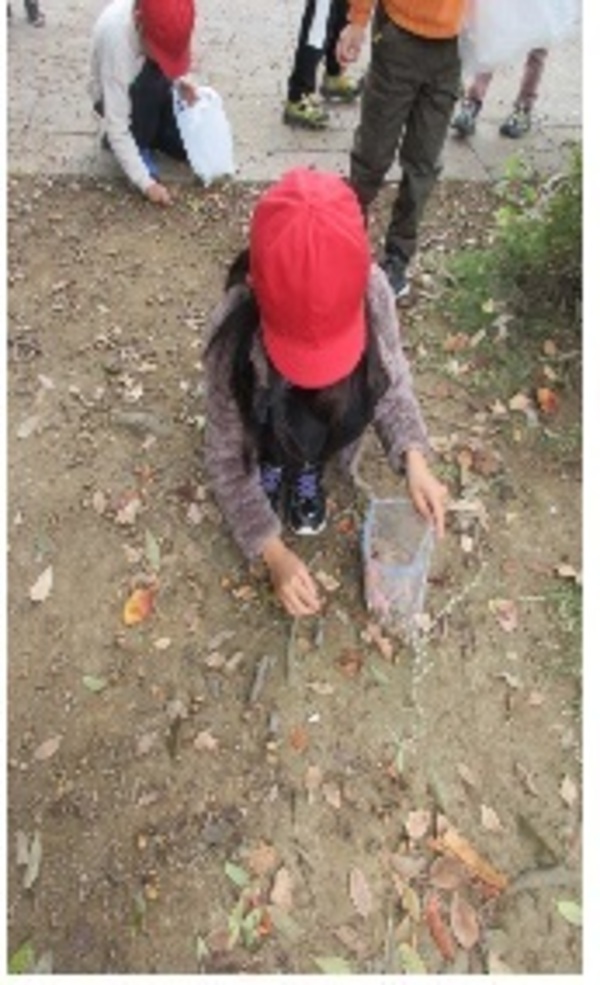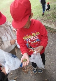 松芝公園や校庭で、秋探しをしました。どんぐりや落ち葉で遊びました。この後、生活科で拾ったどんぐりや落ち葉を使って、学習をします。