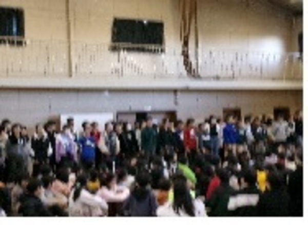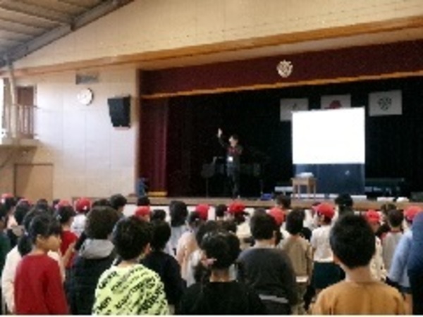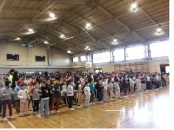 今日の音楽朝会は、来週行われる「ドレミファコンサート」に向けて、いつもとは違う位置で行いました。今月の歌「音楽のおくりもの」を歌いました。途中、違うパートを歌う6年生の歌声をみんなで聞きました。最後に、1~5年生のパートと6年生のパートを合わせて歌いました。きれな歌声が体育館いっぱいに広がりました。