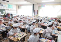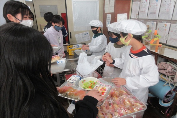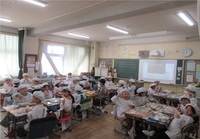 給食週間中、給食委員会の児童が考えた「給食にっこりキャンペーン」も実施しました。時間内に準備できるよう協力したり、苦手なものにもチャレンジしたり、各クラス一生懸命取り組んでくれました。