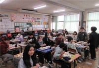 6年生のクラスを見に行ったときには、ごはんも汁物も空っぽで、春巻きのおかわりじゃんけんが行われていました。