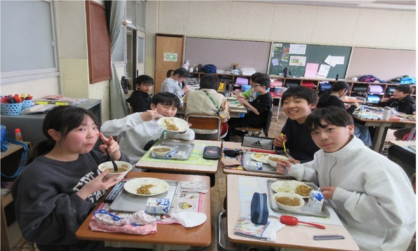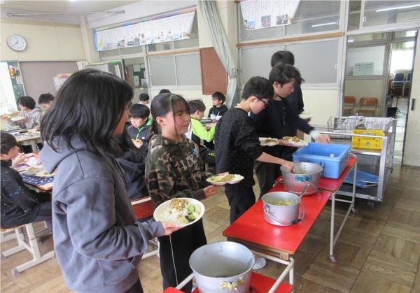 大豆は苦手な人が多いのですが、カレー味のソイ丼はあっという間になくなってしまい、まさに「誰でも食べやすい給食」です。どのクラスもおかわりの列ができていました。